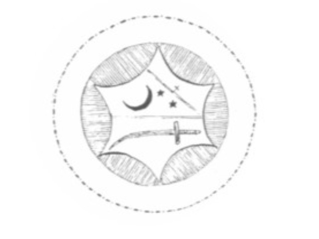 W dole znajduje się srebrny półksiężyc z różkami ku górze, w środku sześcioramienna gwiazda. Zdaniem H. Polaczkówny, herb Ostrogskich jest starym gmerkiem ruskim, który został upodobniony do kształtów heraldyki polskiej. Miasta bowiem otrzymywały nadwerężone godła dziedziców. Owe nadwerężenie polegało na zmianie jakiegoś elementu lub barwy w oryginalnym herbie.